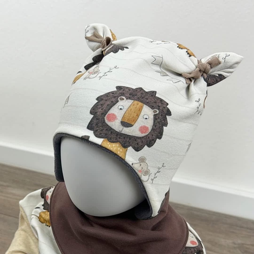 ❗ Hinweis: Die Mütze mit Ohren ist auf Wunsch mit kurzen Bindebändern erhältlich.