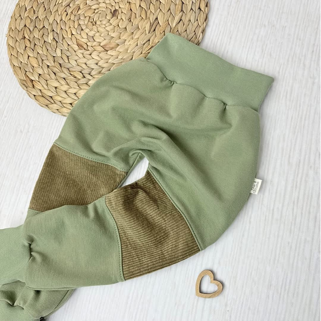 → Robust & strapazierfähig – Im Kniebereich ist robuster Cord vernäht – genau dort, wo Kinderhosen oft als Erstes schlappmachen. Perfekt als Krabbelhose, für die ersten Schritte deines Kindes und als Tobehose.