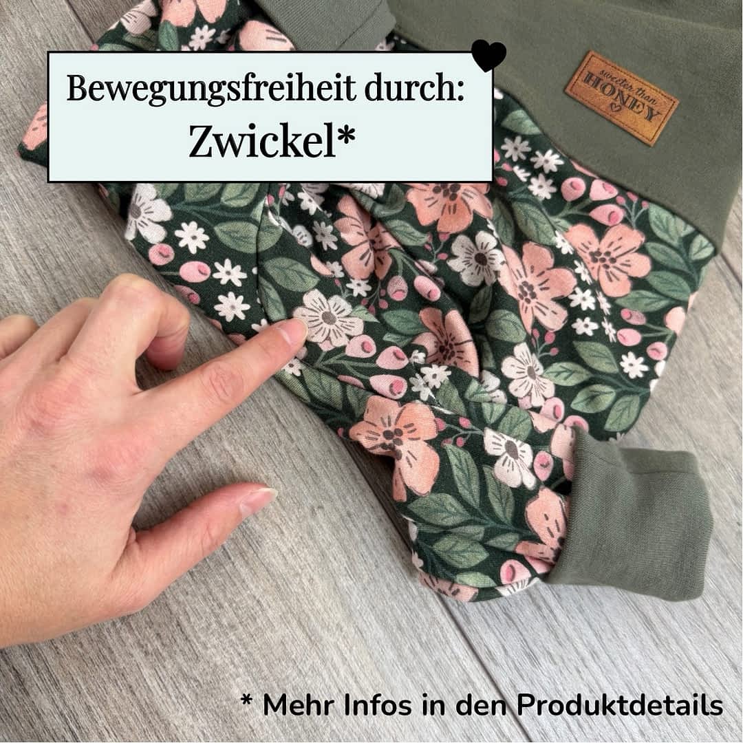 Ich kombiniere die Bündchen und den Kombi-Stoff (bei zweifarbigen Stramplern) harmonisch passend zu deiner Stoffwahl.